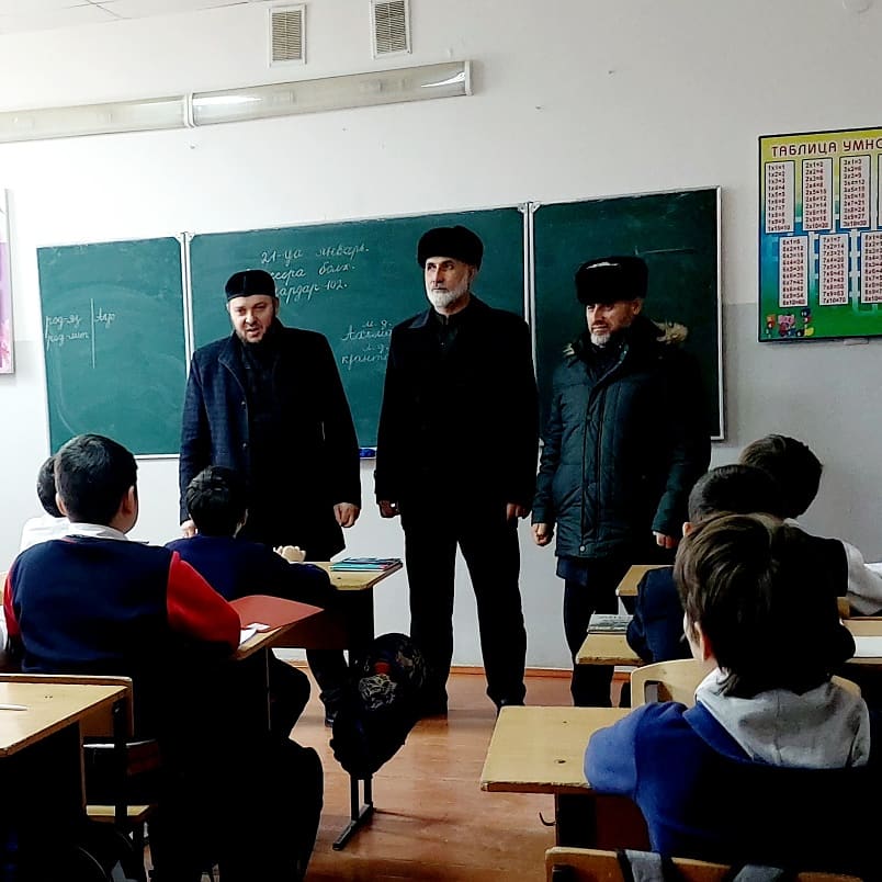 22.01.2020В среду у нас были очень важные гости: председатель совета старейшин района Ахматов Г.В., кадий района Вакаев С.С., имам села Исраилов М.М. Они рассказали об обязанностях мусульман по отношению друг к другу, нравственных ценностях ислама, а также об уважении к старшим и проявлении милосердия к младшим.