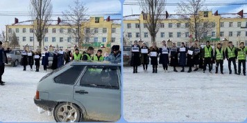 Отряд ЮИД с учителем ОБЖ и работниками МВД России по Курчалоевскому району ЧР провели мероприятия призывающие детей соблюдать "Правила дорожного движения".